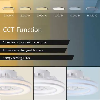 Beschrijving Brilliant Mondello Plafondventilator Kunststof Wit 23W 3100lm - 827-865 CCT | 420mm - Afstandsbediening Dimbaar