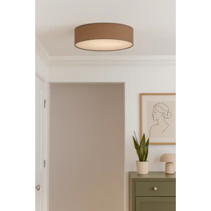 Beschrijving D'Lite Lunelle Plafondlamp 50cm Textiel Bruin | Geschikt Voor 3x E27