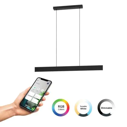 Beschrijving Eglo Connect.Z Smart Pendelarmatuur Andreas-Z Staal Zwart 38W 4600lm - 827-865 Afstembaar Wit + RGB | Dimbaar