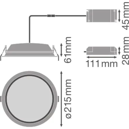 Beschrijving Ledvance LED Downlight DN200 Aluminum 35W 3150lm - 840 Koel Wit | 215m - Zaagmaat 200mm - IP44 - Dali Dimbaar