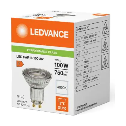 Beschrijving Ledvance LED PAR16 GU10 Reflector 7W 750lm 36D - 840 Koel Wit | Vervangt 80W
