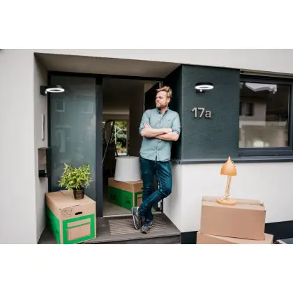 - Het licht brandt standaard met 75 Lumen en licht bij waarneming van beweging op naar 300 Lumen.