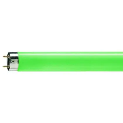 De lamp geven een groene lichtkleur. Let op: wanneer de TL buis uitstaat is deze niet groen van kleur, maar wit.