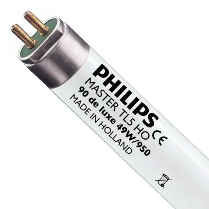 De Philips Master TL5 High Output 90 De Luxe lampen zijn zeer efficiënte TL-buizen met een hoge kleurweergave, hierdoor zien de verlichte objecten er nog beter uit. De buis heeft een G5 lampvoet en een lengte van 145 cm. Met een kleurtemperatuur van 5000K, geeft de lamp een zeer koel wit licht.