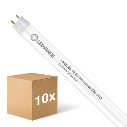 Beschrijving Voordeelpak 10x Ledvance LED Buis T8 Performance (EM/Mains) High Output 13.5W 2100lm - 840 Koel Wit | 120cm - Vervangt 36W